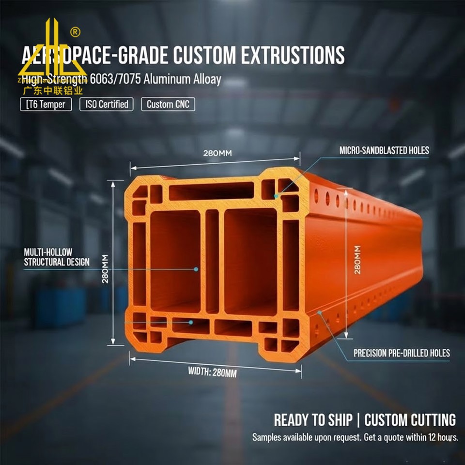 - Aerospazjali-Ligi tal-Grad: Disponibbli f'ligi 6063 (reżistenti għall-korrużjoni-, finitura estetika) u 7075 (temp T6, saħħa strutturali estrema), il-profili tagħna jilħqu l-istandards aerospazjali għal durabilità u affidabilità.